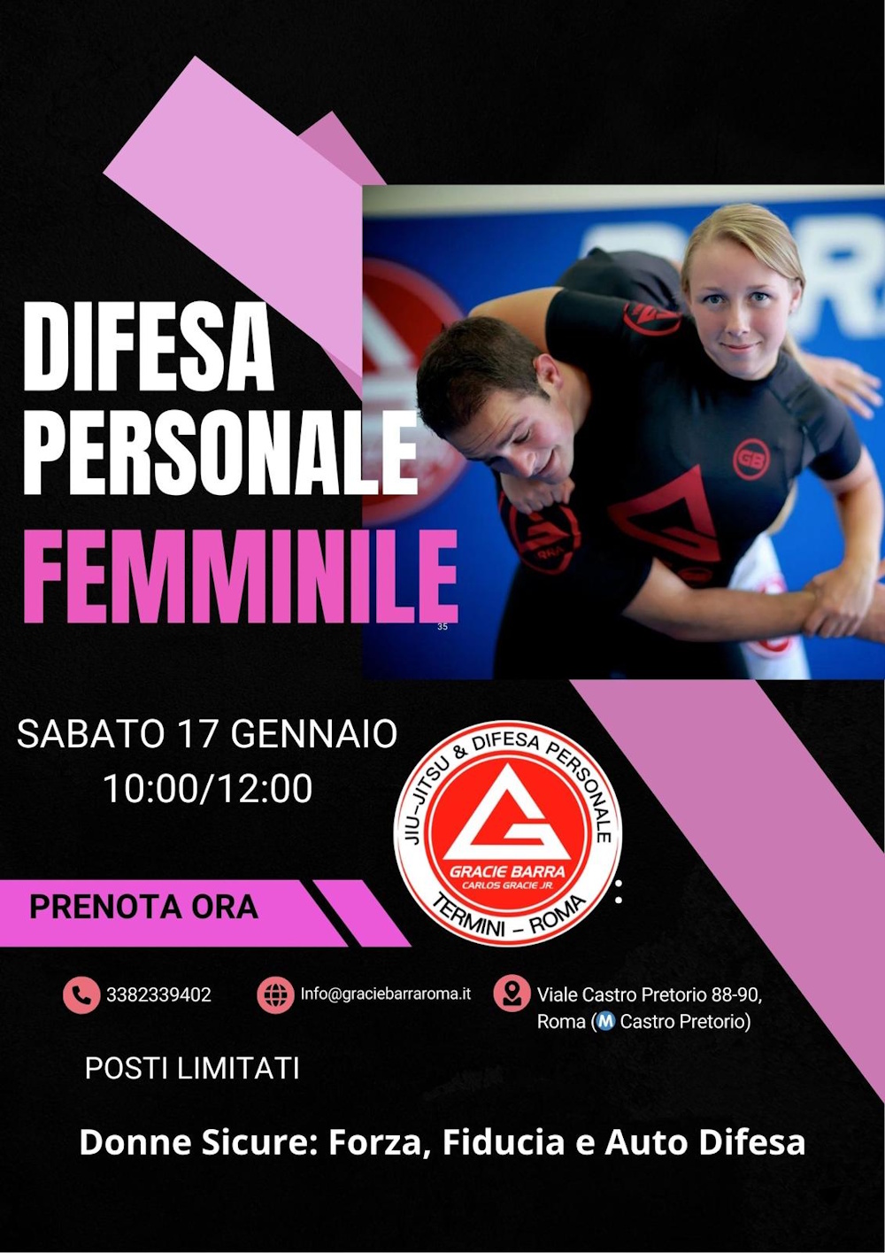 Sabato 17 gennaio 2026 la Gracie Barra Roma apre le porte a una giornata dedicata alla forza femminile con il corso di difesa personale "Donne Sicure: Forza, Fiducia e Autodifesa"!